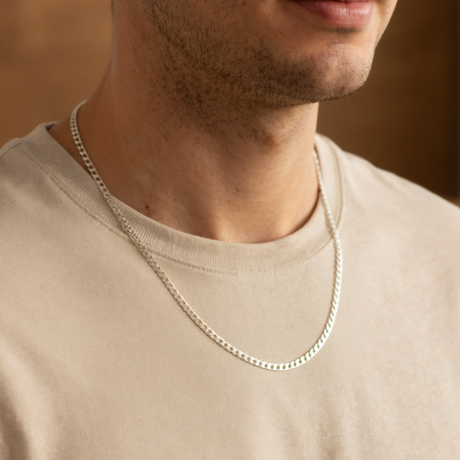 Un complemento clásico y resistente para tu dije conmemorativo. Su diseño de eslabones planos y entrelazados aporta un estilo atemporal, combinando elegancia y durabilidad para llevar tu recuerdo siempre con vos.