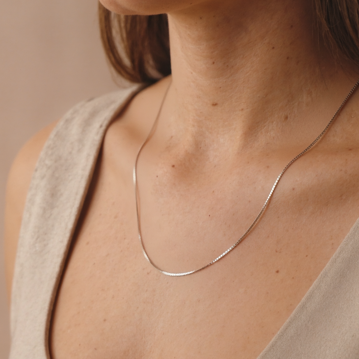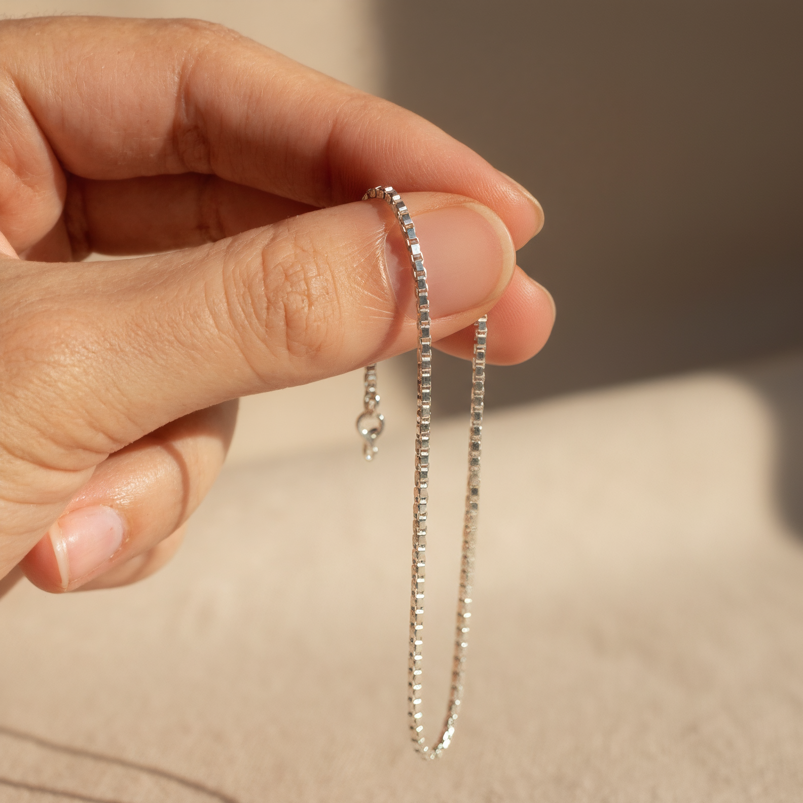 Clásica y sutil, la cadena veneciana está compuesta por eslabones cuadrados que se encastran entre sí con precisión. Su diseño elegante y delicado la convierte en el complemento ideal para cualquier dije conmemorativo, acompañando con presencia sin opacar el recuerdo que lleva.