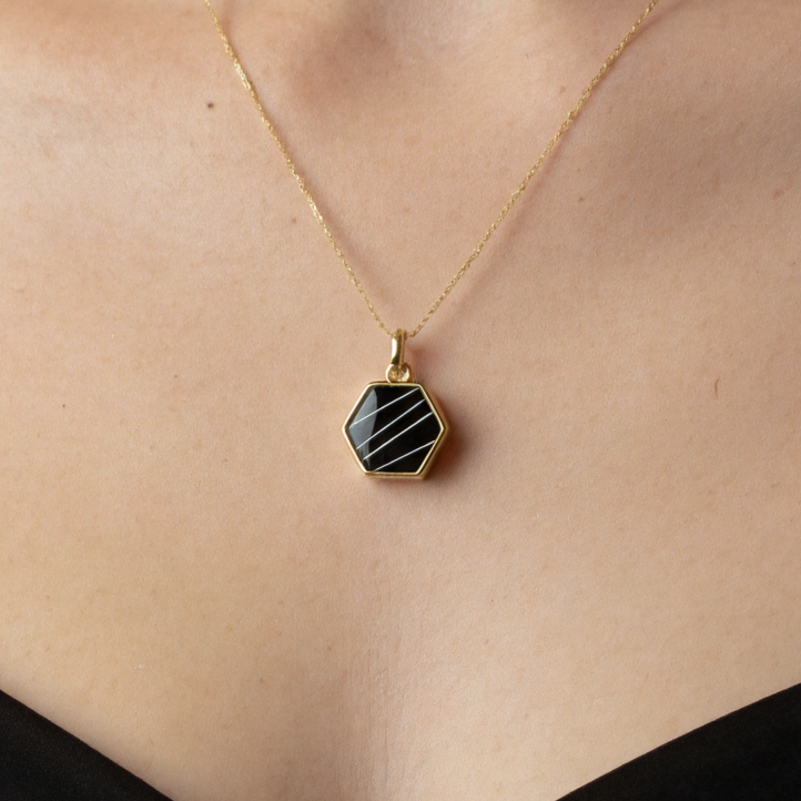 Diseño hexagonal que destaca por su simplicidad y elegancia. Inspirada en la perfección geométrica del hexágono, combina armonía y equilibrio.