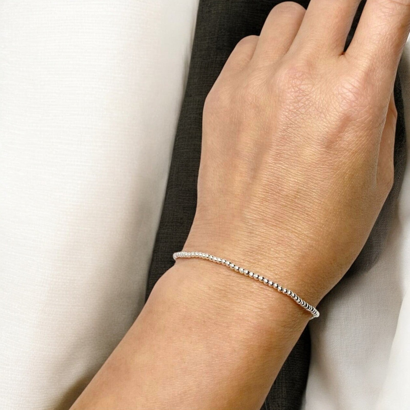 Sutil y elegante, esta pulsera Sphere en Plata 925 destaca por su diseño de pequeñas esferas enlazadas, creando un brillo delicado y atemporal. Su estructura flexible y liviana la convierte en una pieza cómoda para el día a día o para acompañar un dije conmemorativo.