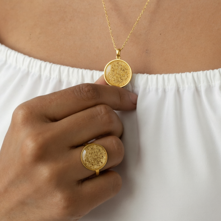 Set Maia 15mm Oro 9k (Anillo + Dije)